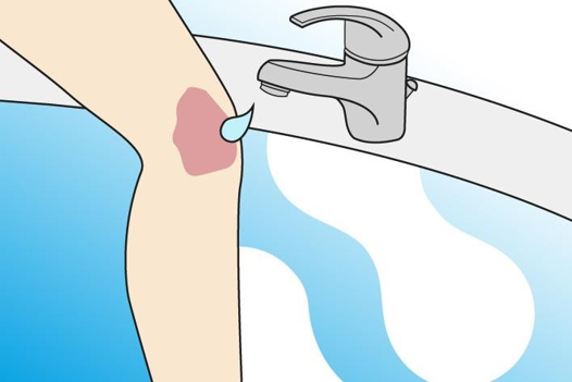 - לאחר מכן, יש לנקות את הפצע ואת האזור שמסביב לו במים נקיים או במוצר לניקוי פצעים בהתאם לייעוץ שקיבלת מאיש הצוות הרפואי.