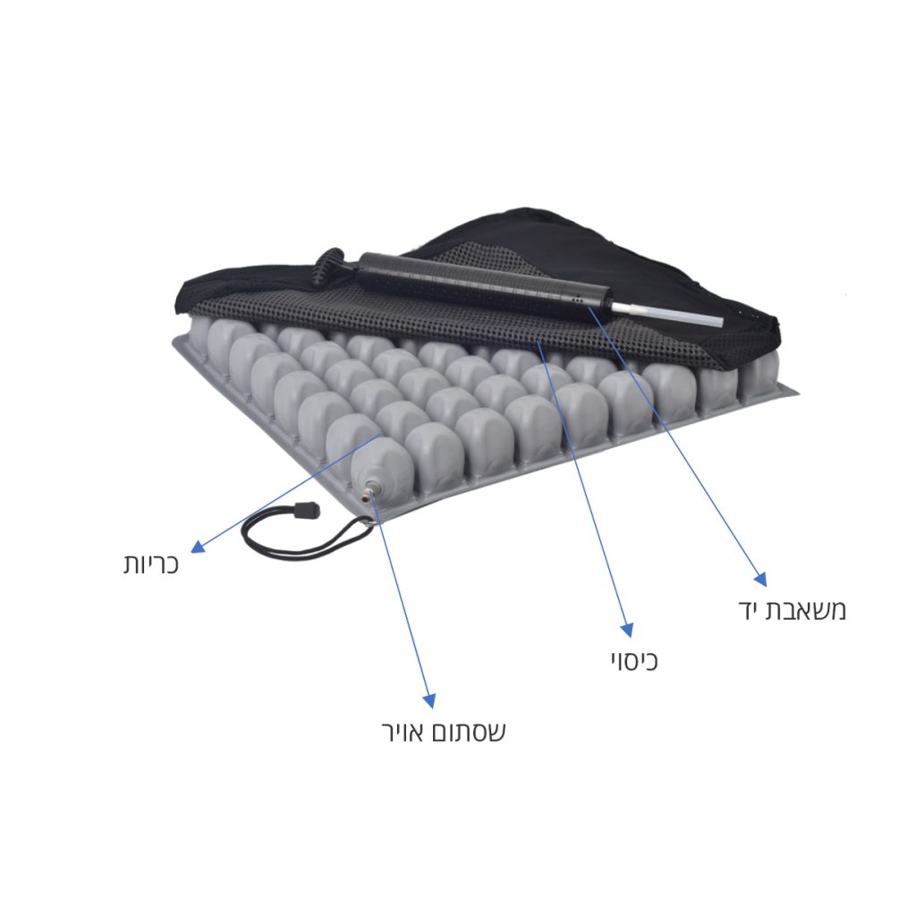 כרית תאים אווריריים: הכרית עשויה מגומי מעורב PVC רפואי וכוללת 72 תאי אוויר מחוברים.