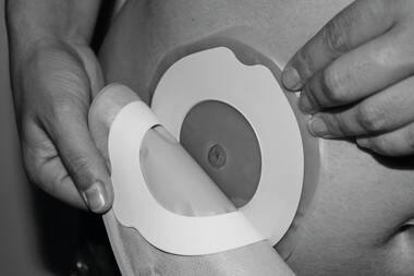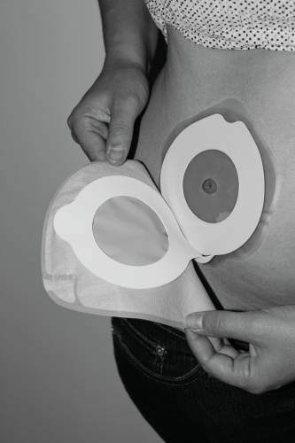 חלק מציוד סטומה ב-2 חלקים. יש להשתמש עם שקית בקוטר המתאים מסדרת ה- Flexima Key למטופלי קולוסטומיה ואילאוסטומיה.