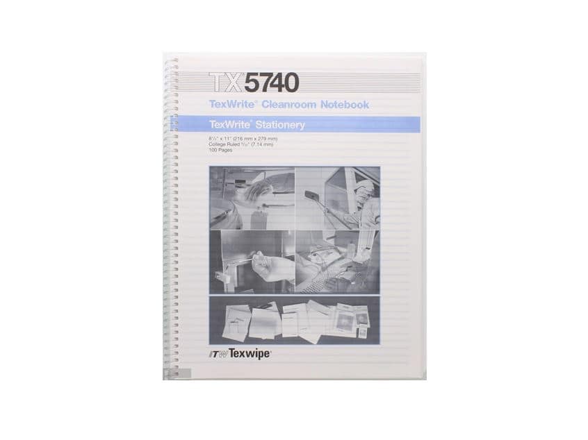 למחברת TX5740 מידות: 27.9 ס"מ × 21.6 ס"מ ("11 × "½8), דפי נייר לחדר נקי הספוגים בלטקס ועליהן מודפסות השורות בדיו דל נתרן, עמיד ב IPA ובעל שיעור פליטת חלקיקים מזהמים נמוכה ביותר. המחברת מכילה 100 עמודים ומגיעה באריזת ניילון נקי לשימוש ופתיחה בחדר נקי.