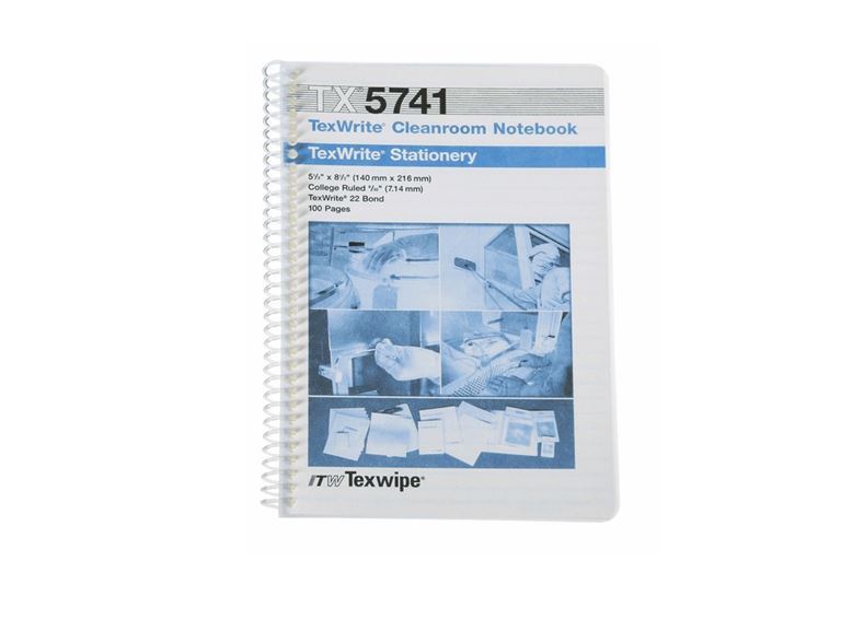 מחברת ספירלה TX5741 עם דפי שורות מסדרת ®TexWrite האיכותית של חברת ITW Texwipe יוצר במיוחד לשימוש בחדרים נקיים. מחברות ®TexWrite לחדר נקי מהוות פתרון מעולה לצורכי כתיבה בחלל הסביבה המבוקרת בחדר הנקי שכן הן מאופיינות ברמת פליטת מזהמים וחלקיקים נמוכה ביותר זאת אודות לכריכת המחברות העשויה מפלסטיק פוליאתילן (high-density polyethylene (HDPE בעלת עמידות בפני כימיקלים, ספירלה עשויה פלסטיק המאפשרת העברת דפים בצורה חלקה ונוחה.