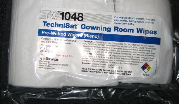 מטליות TX1048 עשויות משילוב של 55% צלולוזה ו-45% פוליאסטר, הן ספוגות בתמיסת ניקוי איזופרופיל אלכוהול (IPA) בריכוז של 70% וב-30% מים שעברו תהליך דה-יוניזציה בסינון של 0.2µm.