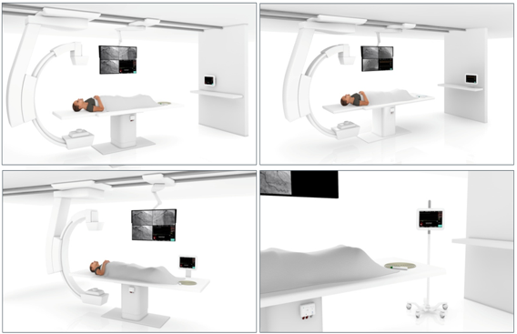 - ניתן להתקין את המערכת במספר מקומות בחדר הצנתורים לרבות מיטת החולה, שולחן עבודה, על הקיר או על מעמד נייד