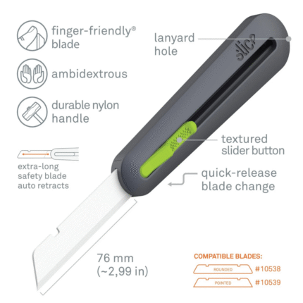 סכיני בטיחות עוזרים למנוע פציעות מקריות. בהמון דגמים, להב הסכין פשוט ייסוג חזרה ברגע שהוא מאבד מגע עם חומר החיתוך, מה שהופך את סכיני הבטיחות לבחירה הטובה ביותר עבור עובדים מסוגים סוגים. סכינים אלו נוחים לאחיזה ושימוש, מאמצים פחות את השרירים ומפחיתים את הסיכון לפציעות ארוכות טווח עקב עומס ועייפות, ולכן שומרים על העובדים כמה שיותר בטוחים.