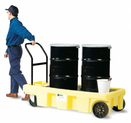 עגלת אצירה ושינוע ל-2 חביות Polly Spill Cart 5200. אידאלית לשינוע יעיל ונוח של חביות בנפח 55 גלון (208 ליטר). מיוצרת ע"י חברת ENPAC.
