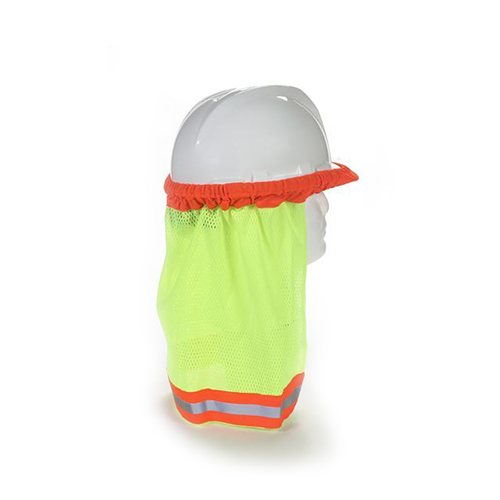 כיסוי מגן צוואר רב שימושי ואוורירי מדגם ANSI Lime Mesh Hard Hat Neck Shade with Reflective, מתחבר אל קסדות מגן ומעניק הגנה על אזורי הצוואר, הפנים והאוזניים מפני קרינת השמש ברמת סינון של עד 99% מקרני UVA ו- UVB.