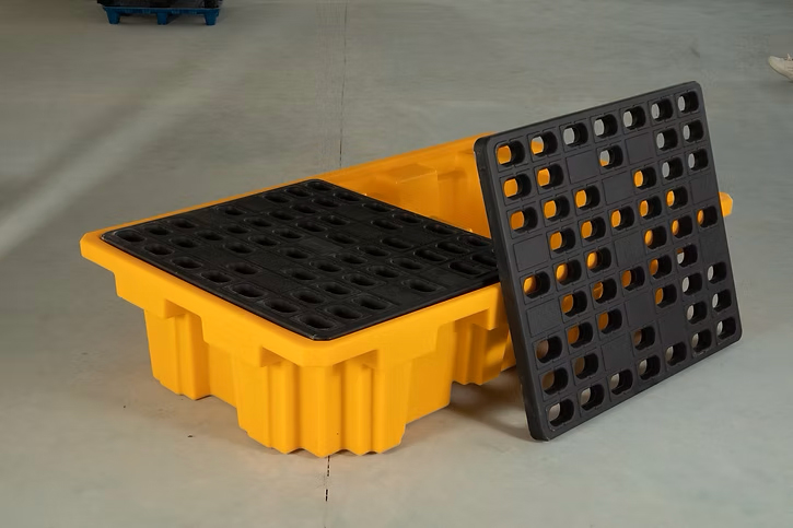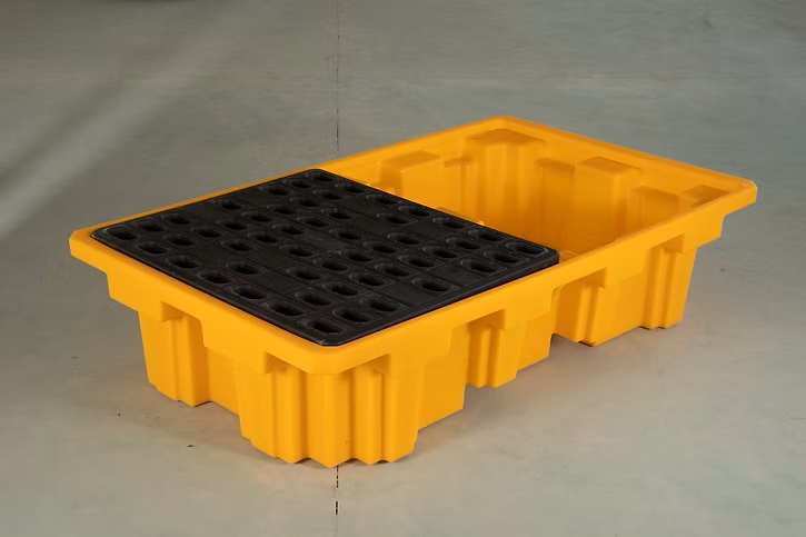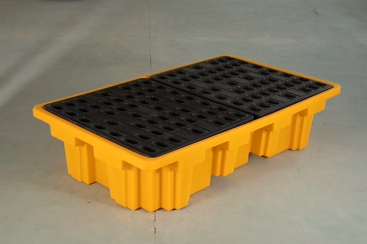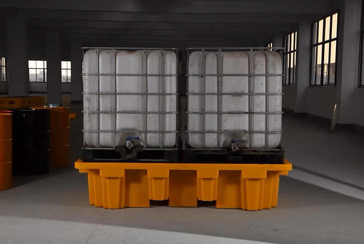 משטח אגירת נוזלים איכותי מבית Enlightening Plast, מיועד לאחסון בטוח של עד שני מיכלי IBC. המשטח מונע דליפות וחלחול נוזלים מזיקים לקרקע, ועומד בדרישות הבטיחות הסביבתיות לאחסון חומרים מסוכנים ודליקים.