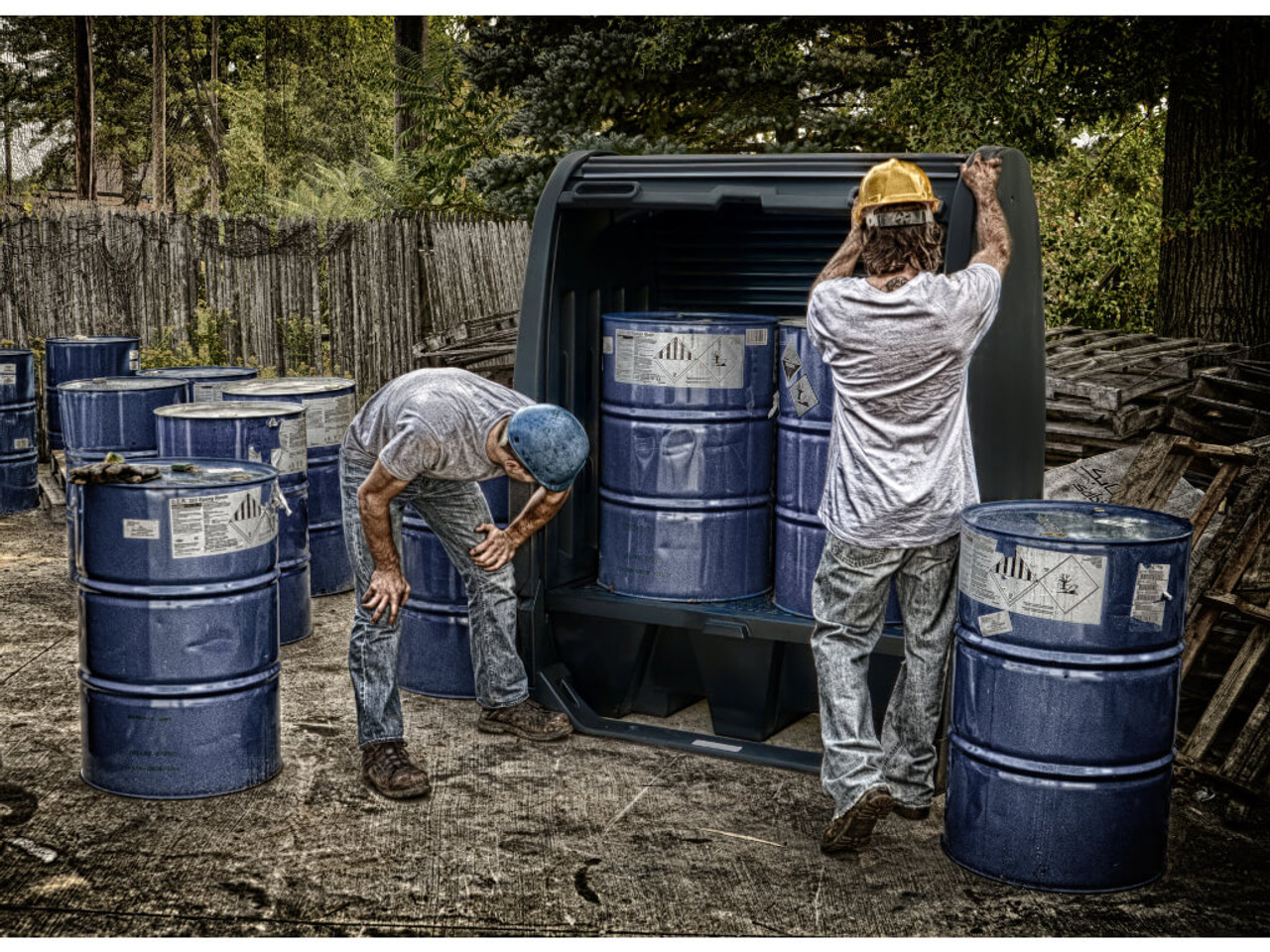 סככת אחסון חיצונית איכותית מבית Enpac, מיועדת לאחסון בטוח של עד 2 חביות בנפח 200 ליטר כל אחת. הסככה מונעת דליפות וחלחול נוזלים מזיקים לסביבה, ועומדת בדרישות הבטיחות הסביבתיות המחמירות לאחסון חומרים מסוכנים ודליקים. היא מספקת פתרון אחסון חיצוני עמיד בפני חלודה וקורוזיה.