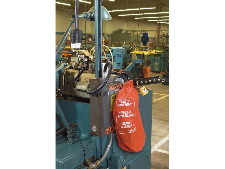 שק נעילה 453L של חברת MasterLock, משמש לנעילת תקעים חשמליים ושלטי פיקוד.